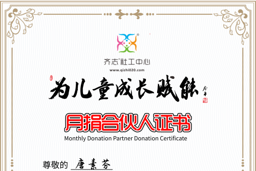 唐素芬月捐合伙人证书2026YJ096